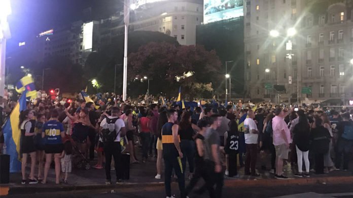 Con el pitazo final y los festejos del público “Xeneize” en la Bombonera por la consagración del torneo de Primera División, el público se acercó al monumento céntrico.