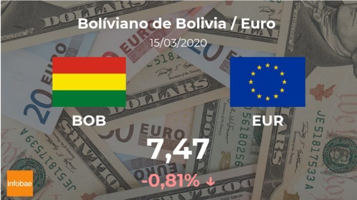El boliviano se paga a las 18:47 horas a 7,47 euros, lo que supuso un descenso del 0,81% frente a los 7,53 euros del día anterior.