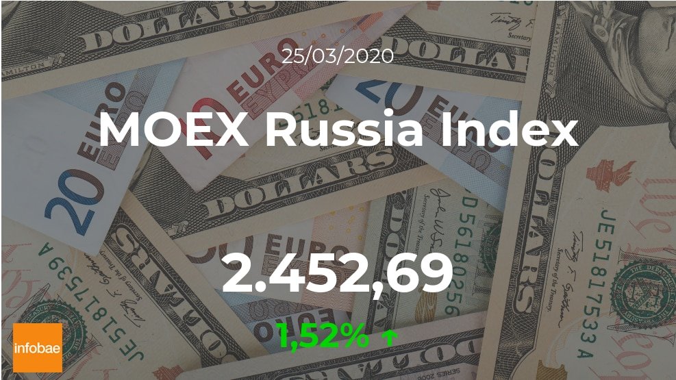 Positiva jornada para el MOEX Russia Index, que terminó la sesión del miércoles 25 de marzo con notables subidas del 1,52%, hasta los 2.452,69 puntos. El MOEX Russia Index anotó un máximo de 2.518,38 puntos y un mínimo de 2.372,34 puntos. El rango de cotización para el MOEX Russia Index entre su punto más alto y el más bajo (máximo-mínimo) durante este día se situó en el 5,8%.