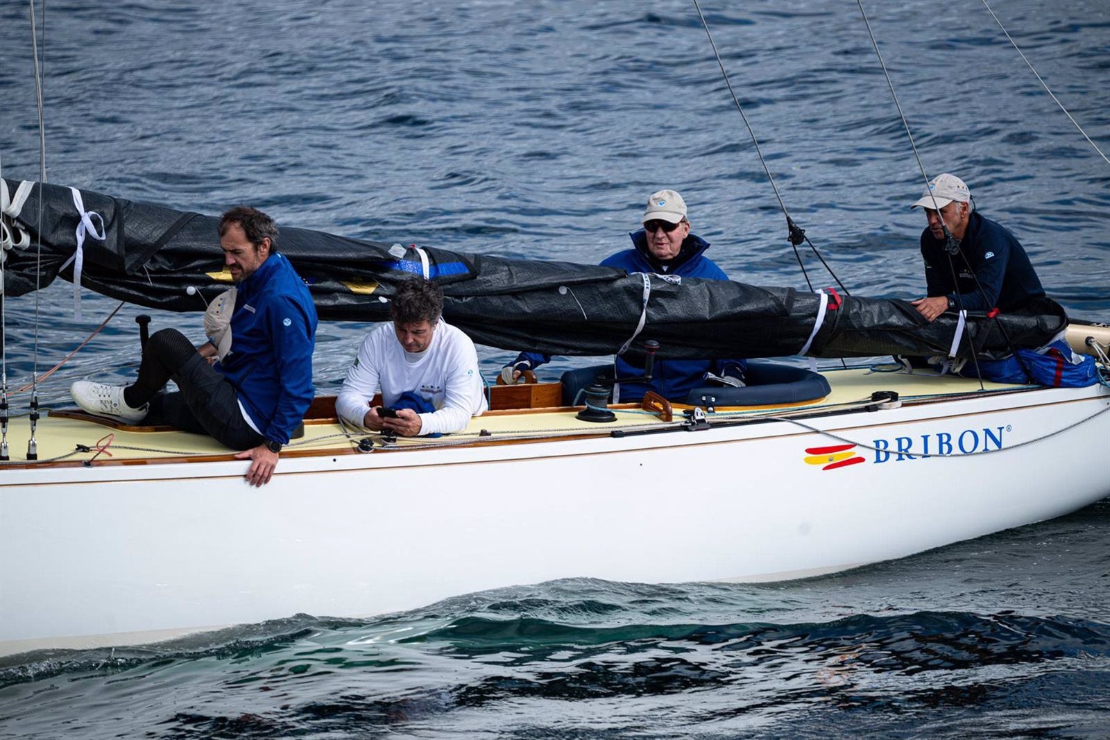 Juan Carlos I y la infanta Elena han llegado a puerto tras más de dos horas de navegación por la Ría de Pontevedra, en la que ha sido la primera jornada de vela de este 2024. Así, minutos antes de las 16,00 horas el ‘Bribón’, con el rey emérito a la caña, ha llegado al puerto deportivo de Sanxenxo, al igual que su primogénita que lo acompañó desde la lancha ‘Cristina’. El exmonarca, sentado en el asiento del copiloto, ha salido directamente y ha saludado a la gente que lo esperaba, sin parar en el Club Náutico, para la casa que Pedro Campos tienen en la zona de Nanín. Si la meteorología lo permite, este sábado y domingo, Juan Carlos I participará en la primera regata del año de los veleros de la clase 6 metros. Antes se salir a navegar, en la mañana de este viernes, el exmonarca ha estado hablado con varios miembros de la tripulación y ha recibido la visita de Inés Muiños, la mujer de Josep Cusí, con la que la Infanta Elena le ha sacado una foto. Además, Inés Muiños ha acompañado a la infanta Elena durante esta jornada de navegación.