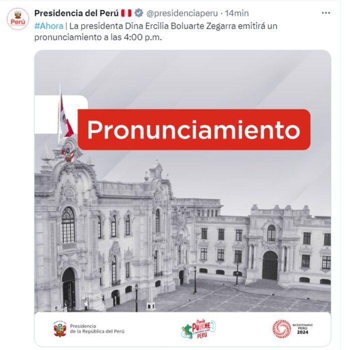 Pronunciamiento de Dina Boluarte es anunciado para este viernes 5 de abril