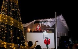 Vecinos, turistas y autoridades compartieron el acto que incluyó música coral, bendición religiosa y la aparición especial de Papá Noel.